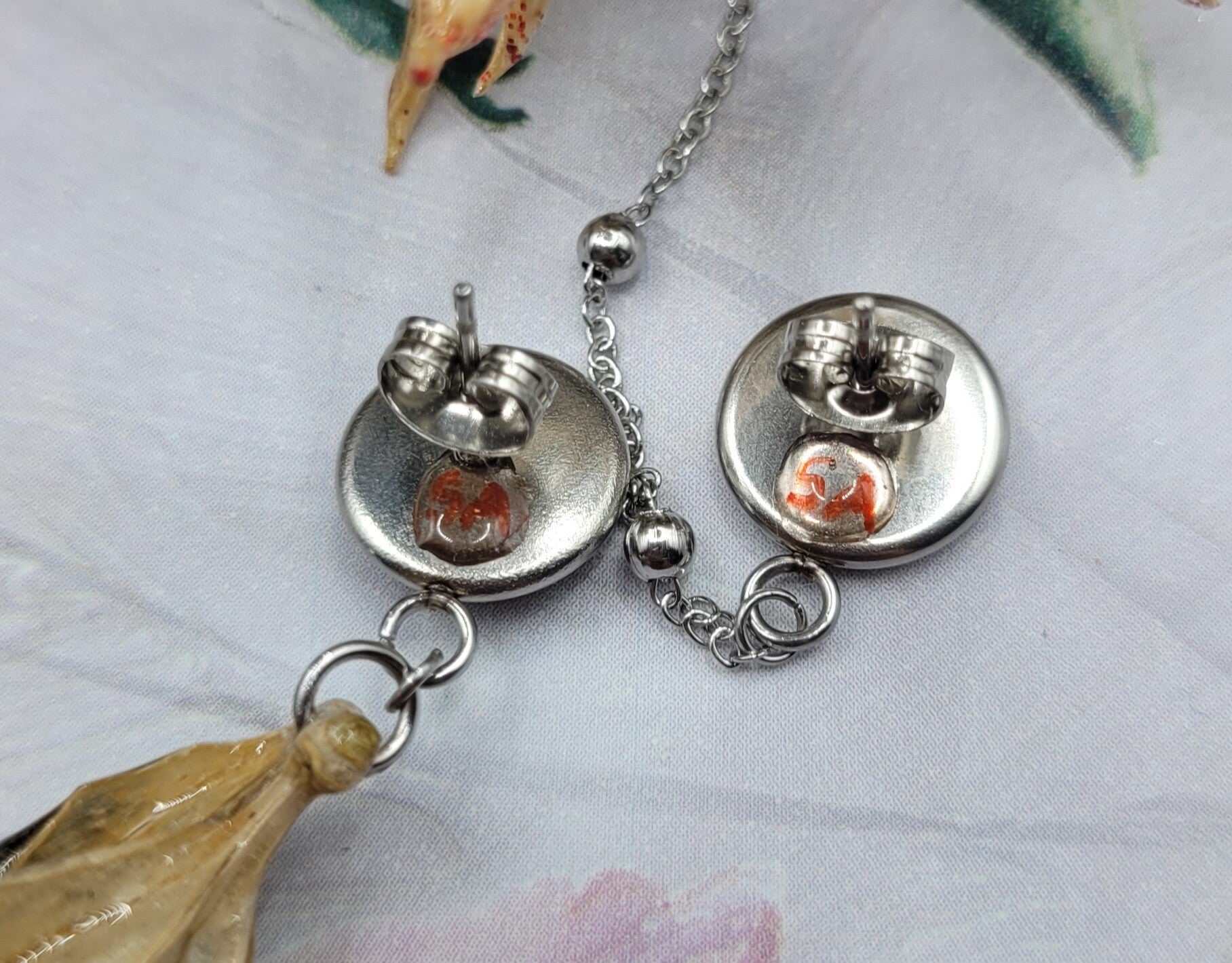 Le tout est scellé dans la résine et monté sur boucles d'oreilles pailletés rouge en acier inoxydable