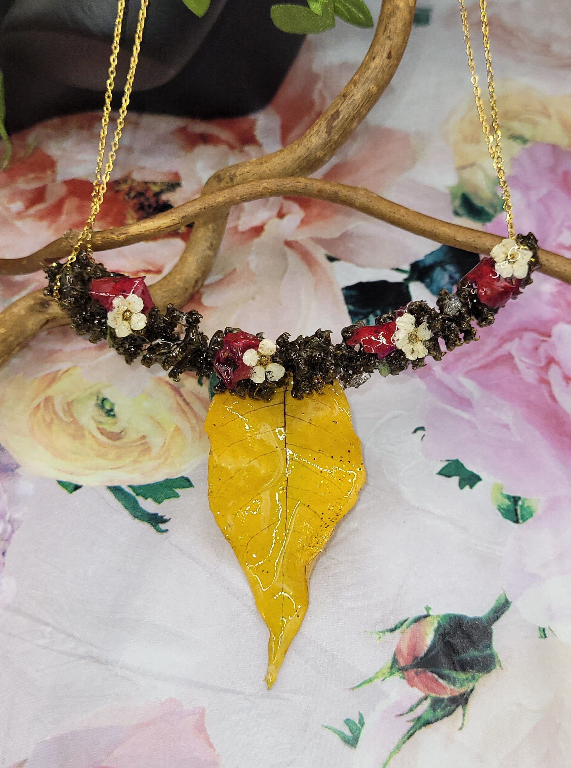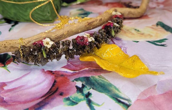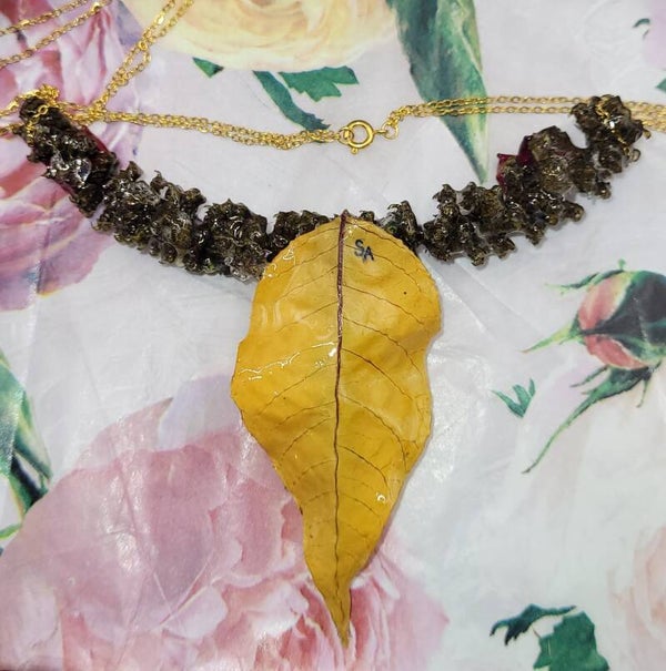 Le tout est scellé dans la résine et monté sur chaîne en acier inoxydable doré