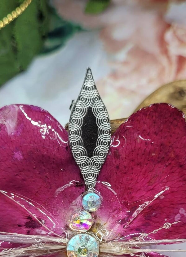 Le tout est scellé dans la résine et monté sur jolies boucles d'oreilles en acier inoxydable