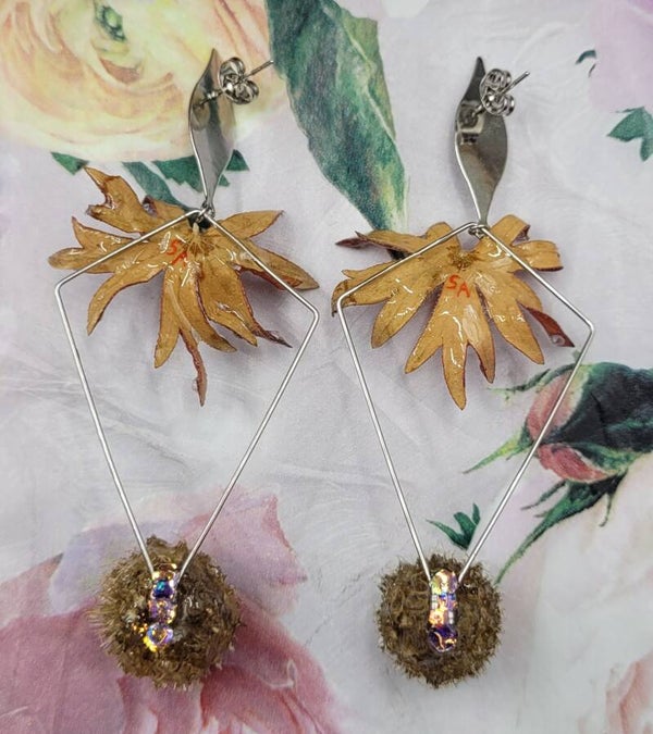 Le tout est scellé dans la résine et monté sur jolies boucles d'oreilles en acier inoxydable