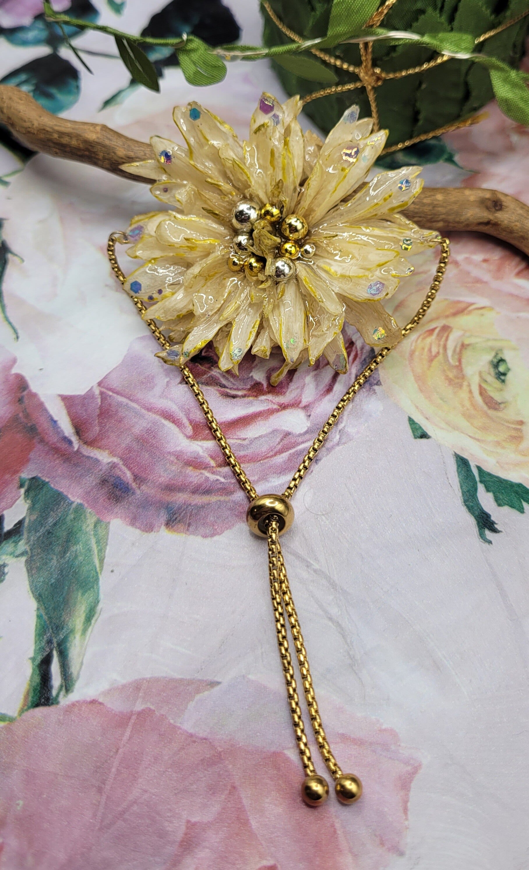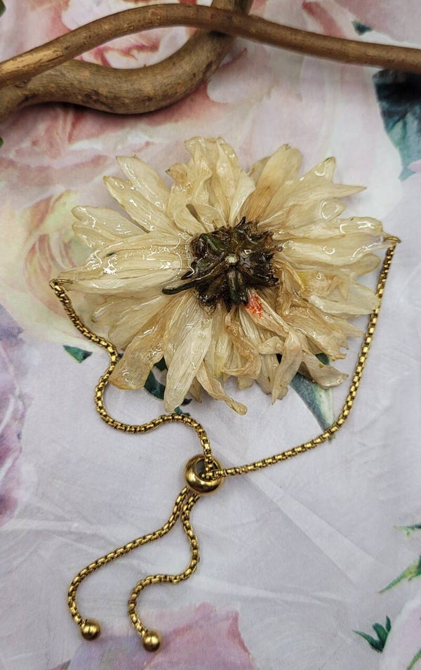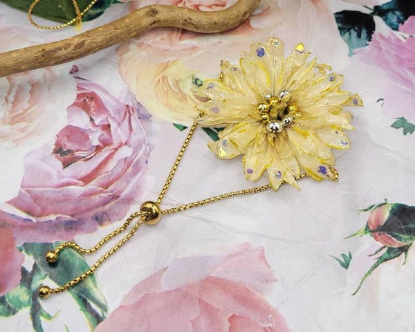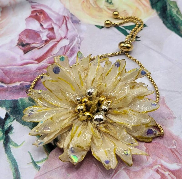 Bracelet composé d'une belle marguerite de couleur blanc cassé / beige