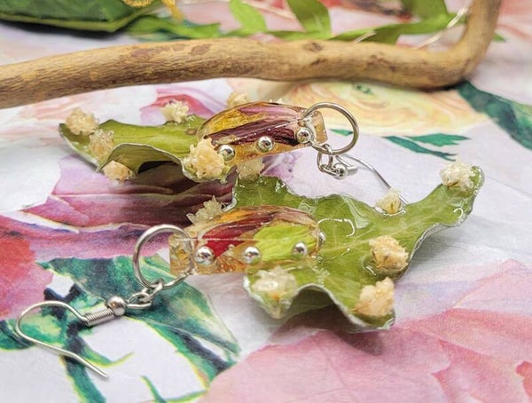 Le tout est scellé dans la résine et monté sur boucles d'oreilles en acier inoxydable