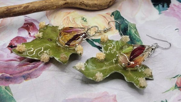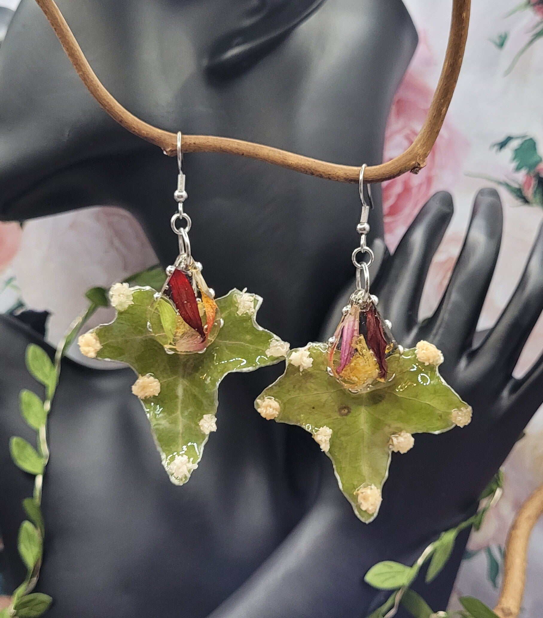 Boucles d'oreilles composées de belles feuilles de Lierre .