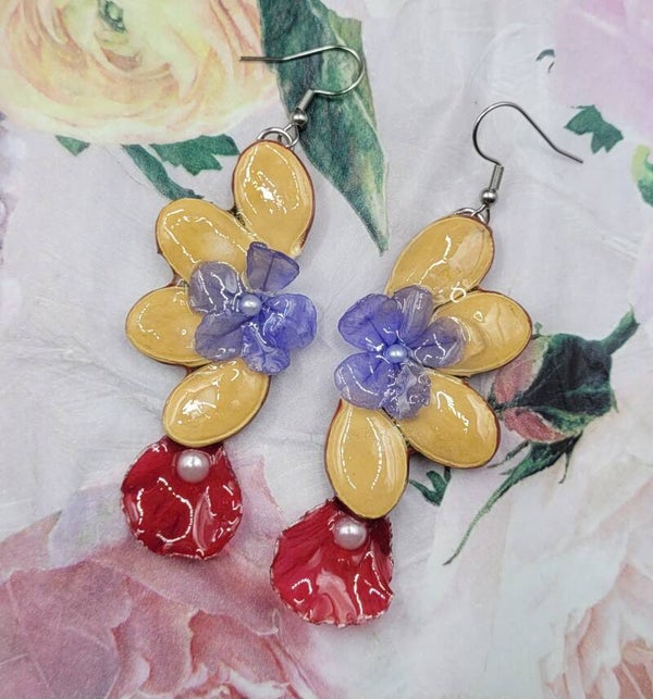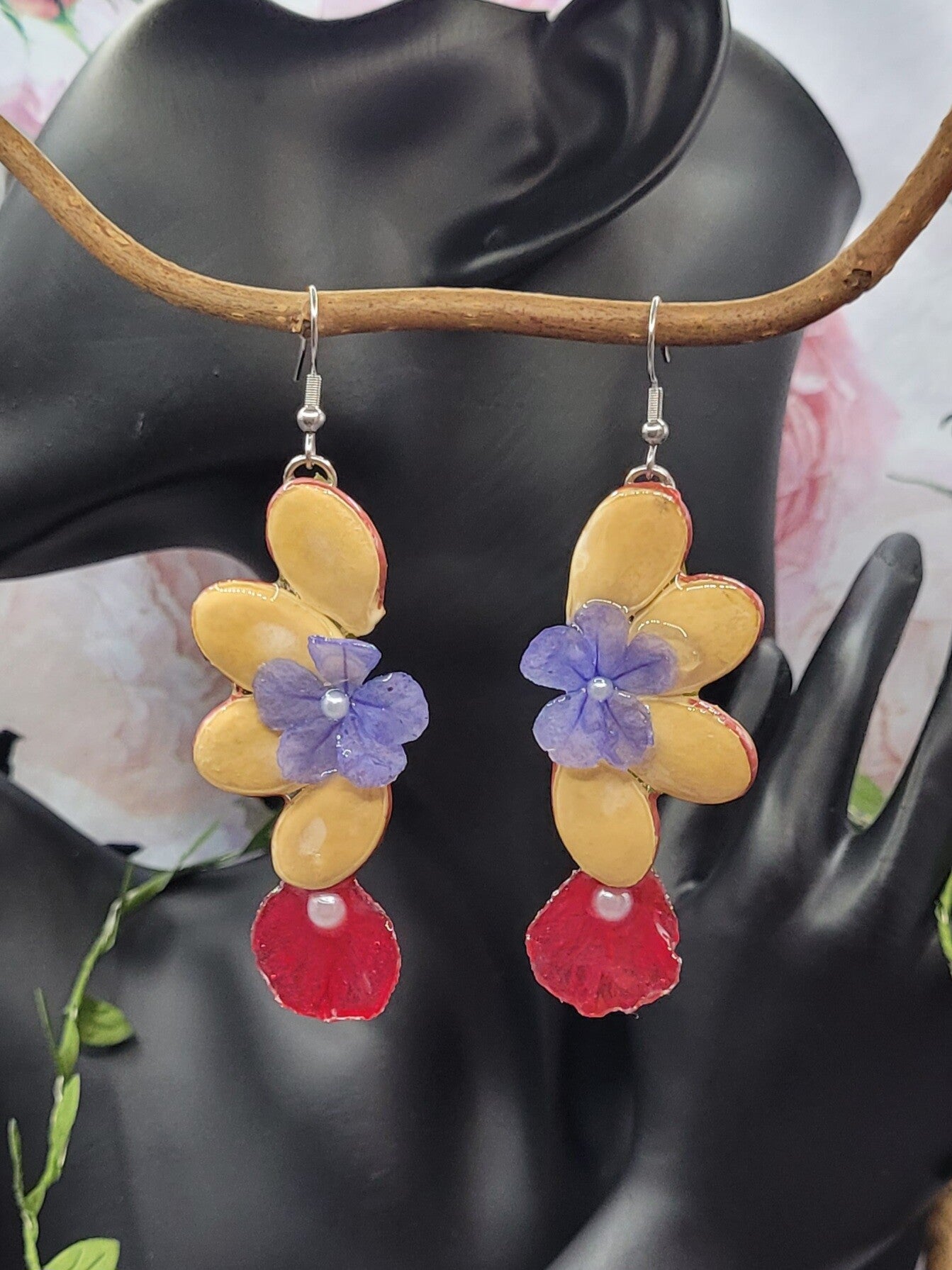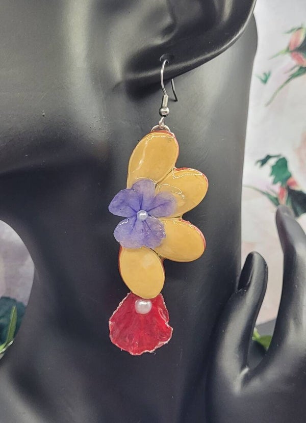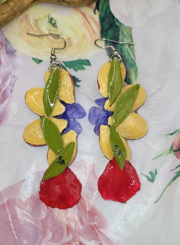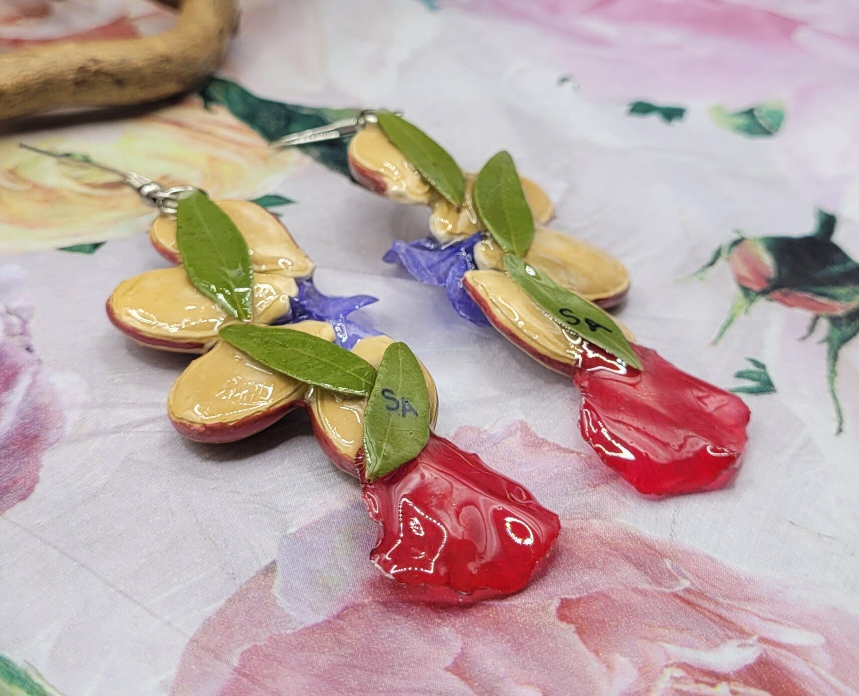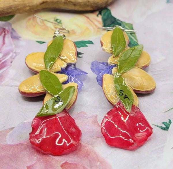 Le tout est scellé dans la résine et monté sur boucles d'oreilles en acier inoxydable