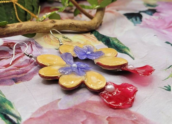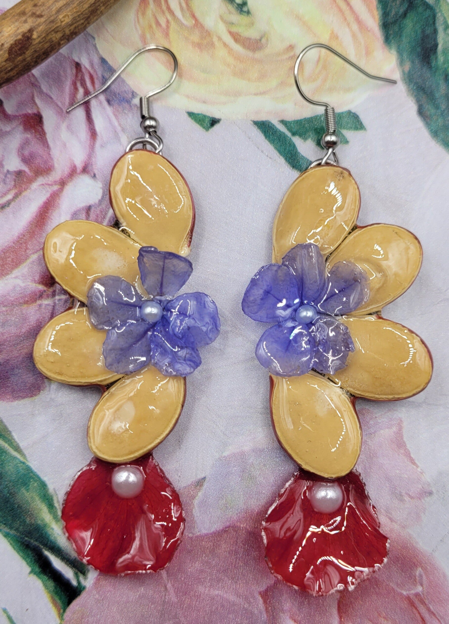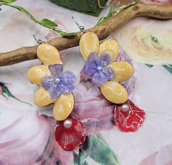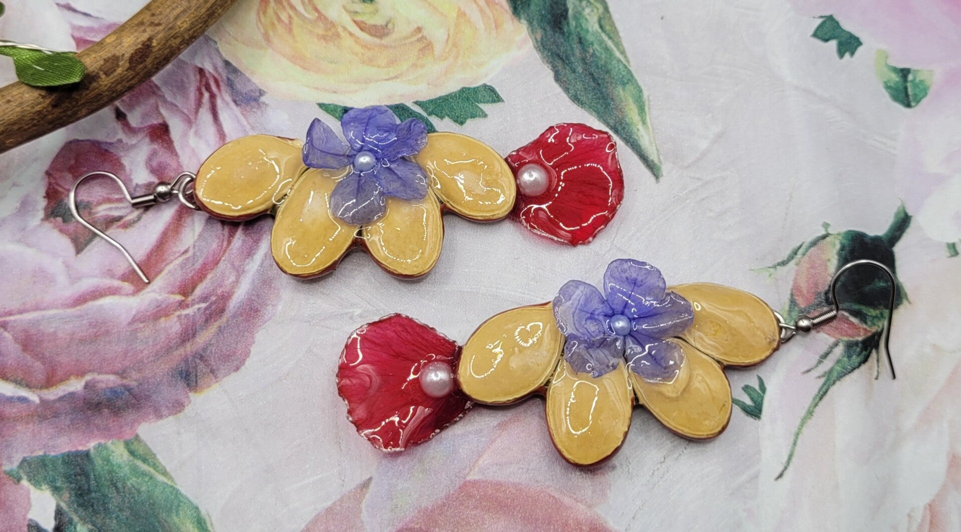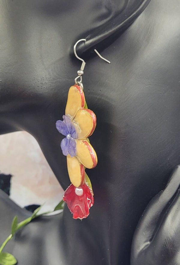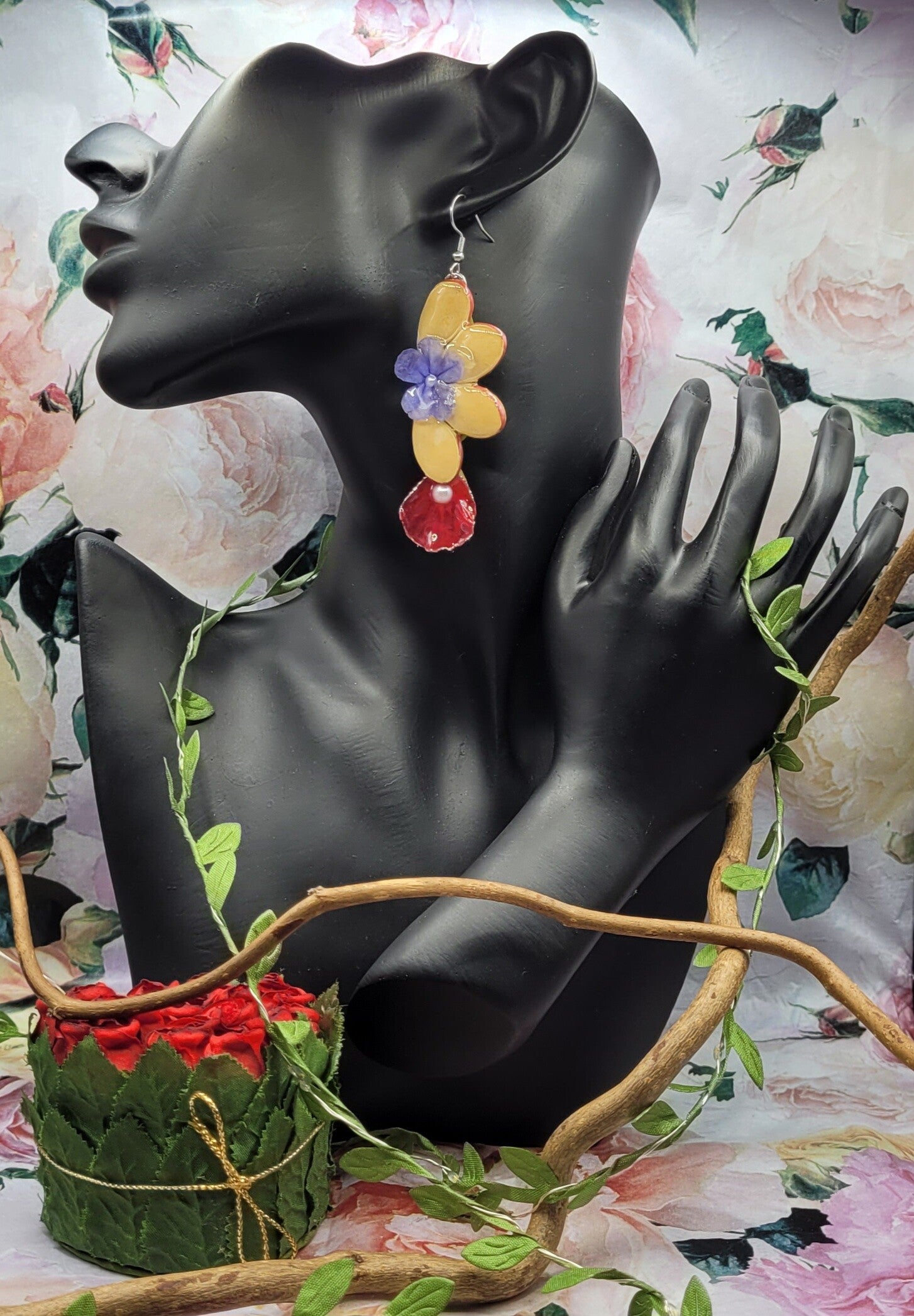 Le tout est scellé dans la résine et monté sur boucles d'oreilles en acier inoxydable