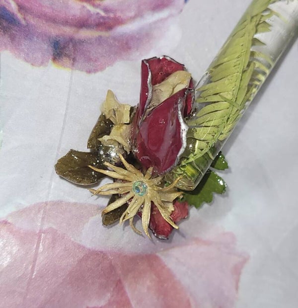 Strass et demi perle argenté sont ajoutés sur les végétaux