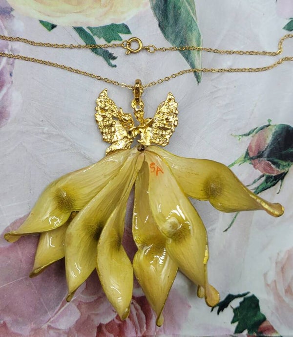 Le tout est scellé dans la résine et monté sur collier chaîne en acier inoxydable doré