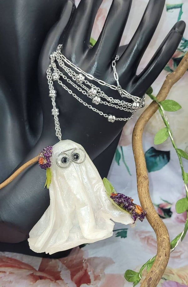 54 cm de long au total pour le sautoir (chaîne + fantôme)