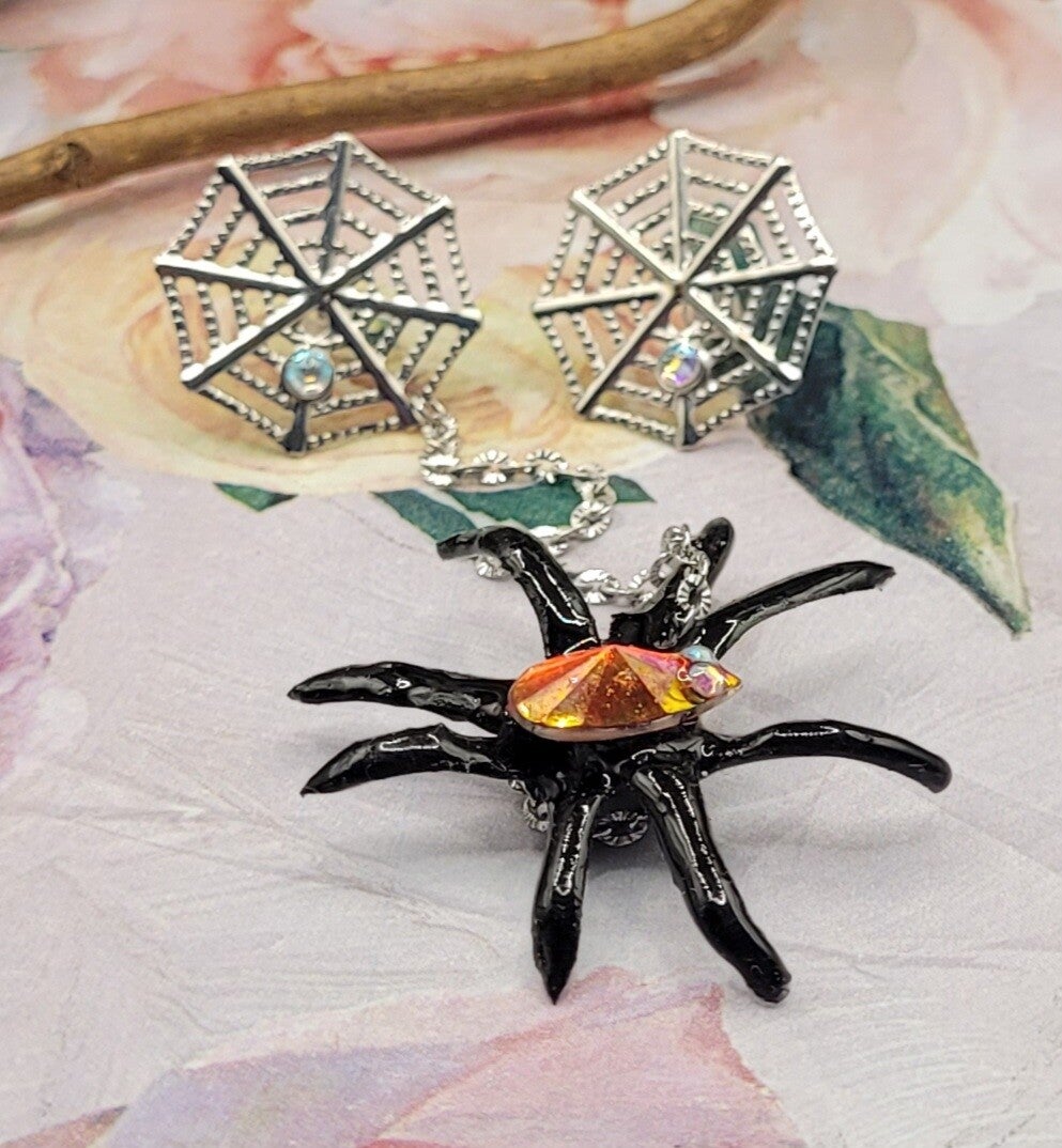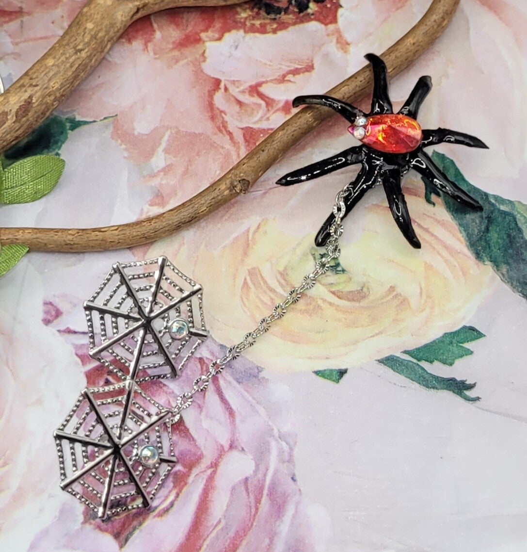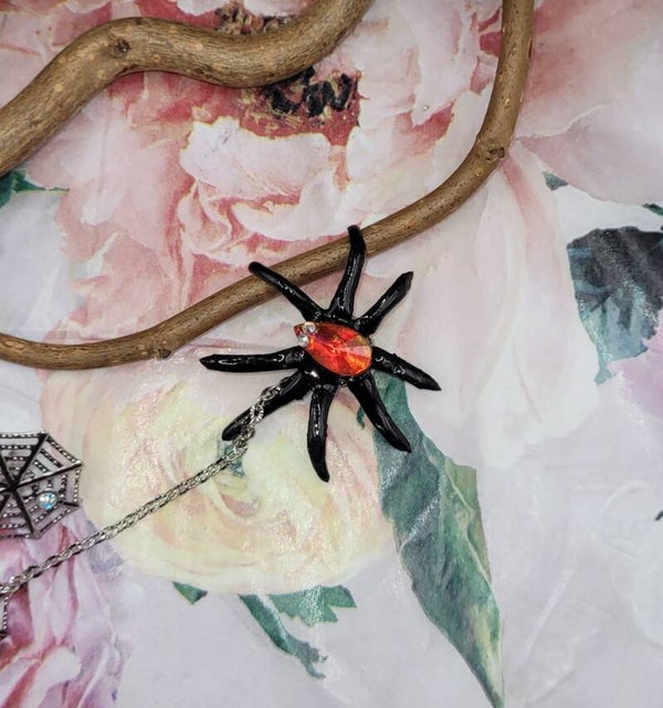 La deuxième boucle contient également la toile d'araignée , ainsi qu'une chaînette argentée qui retient une patte de l'araignée .