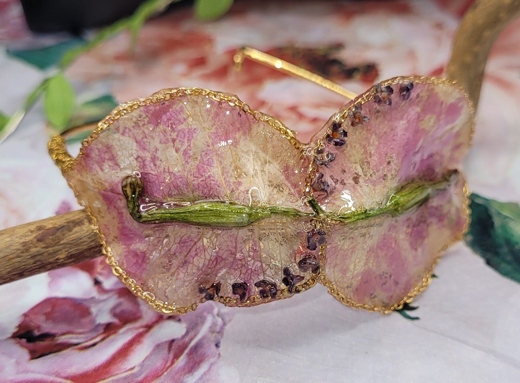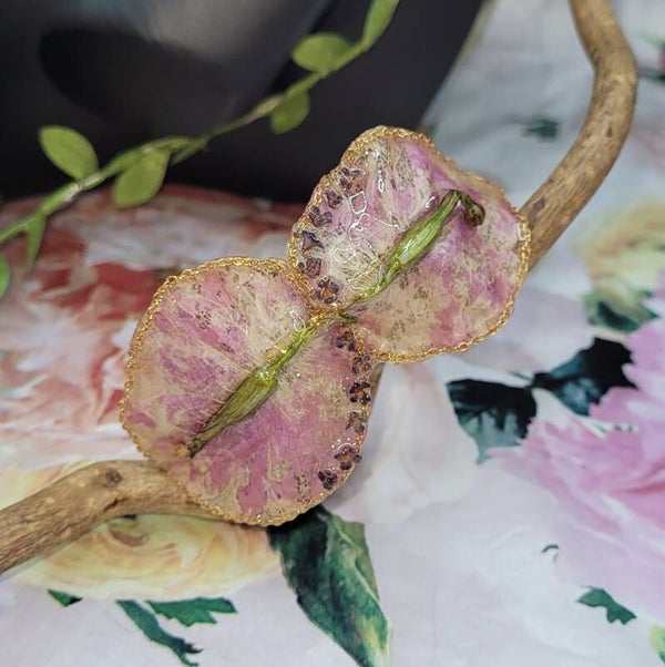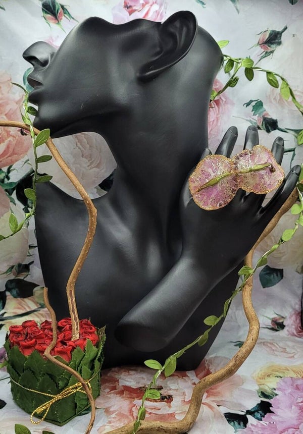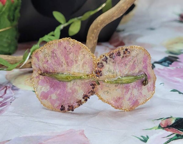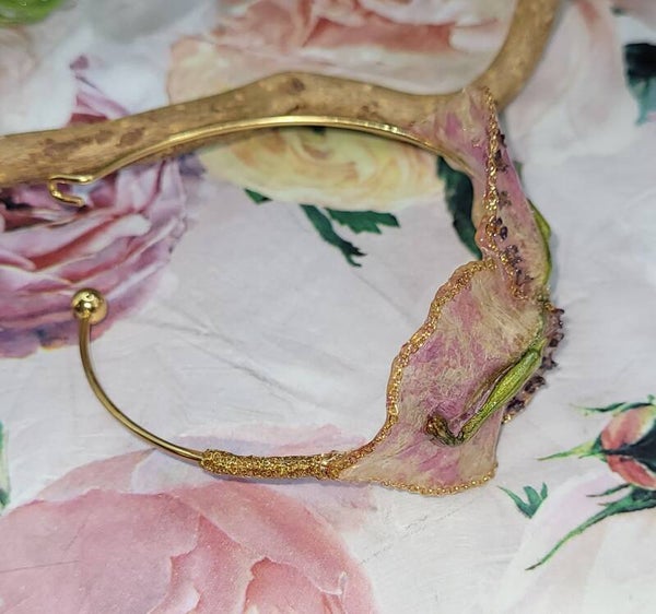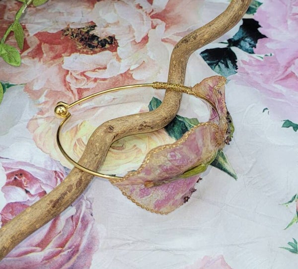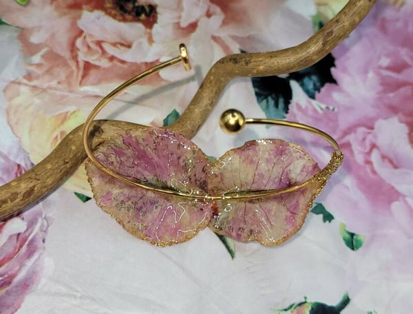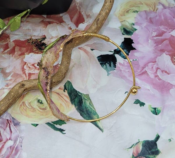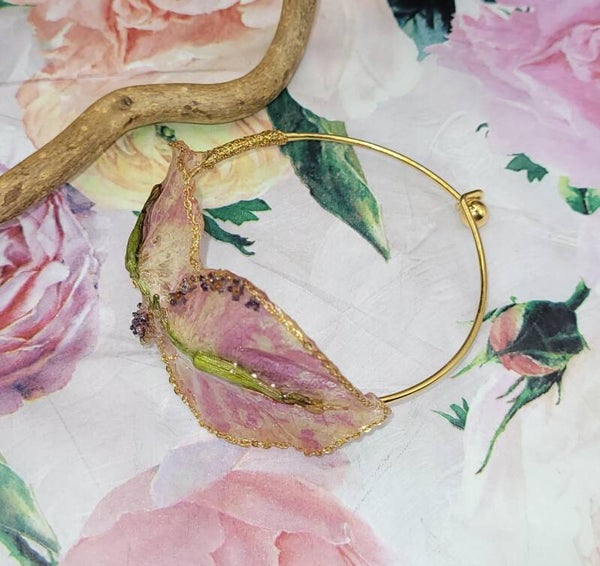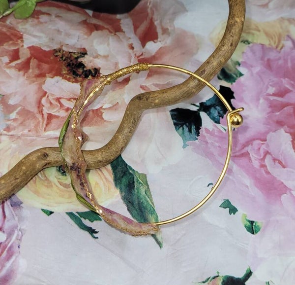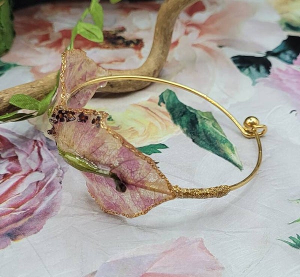 Bracelet / jonc composé de 2 pétales de fleurs de bougainvillier avec des nervures bien apparentes .
